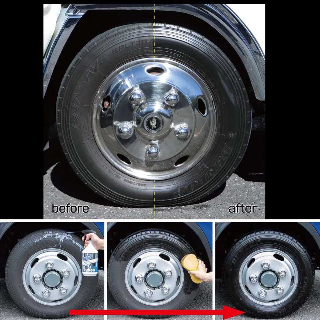 高濃度に配合したシリコーンのチカラで、タイヤ本来の色・ツヤを取り戻します。