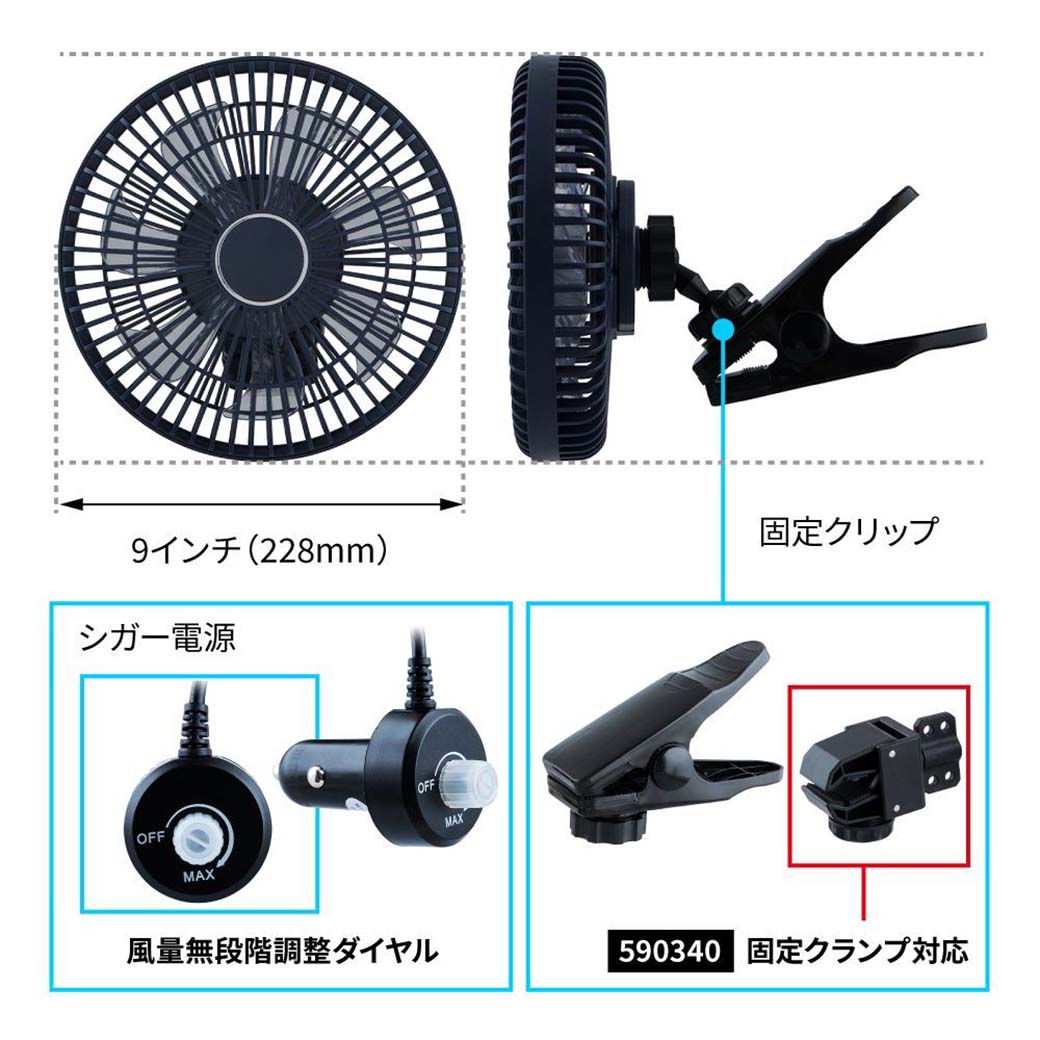 ルームファン(扇風機)静音タイプ/9インチクリップ固定式12/24V共用
