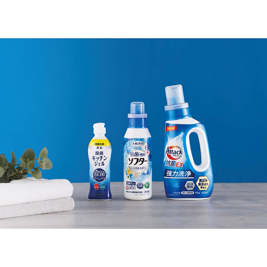 花王アタック抗菌EX750g・除菌キッチンジェル200ml・洗たく槽クリーナーPRO200g×各1