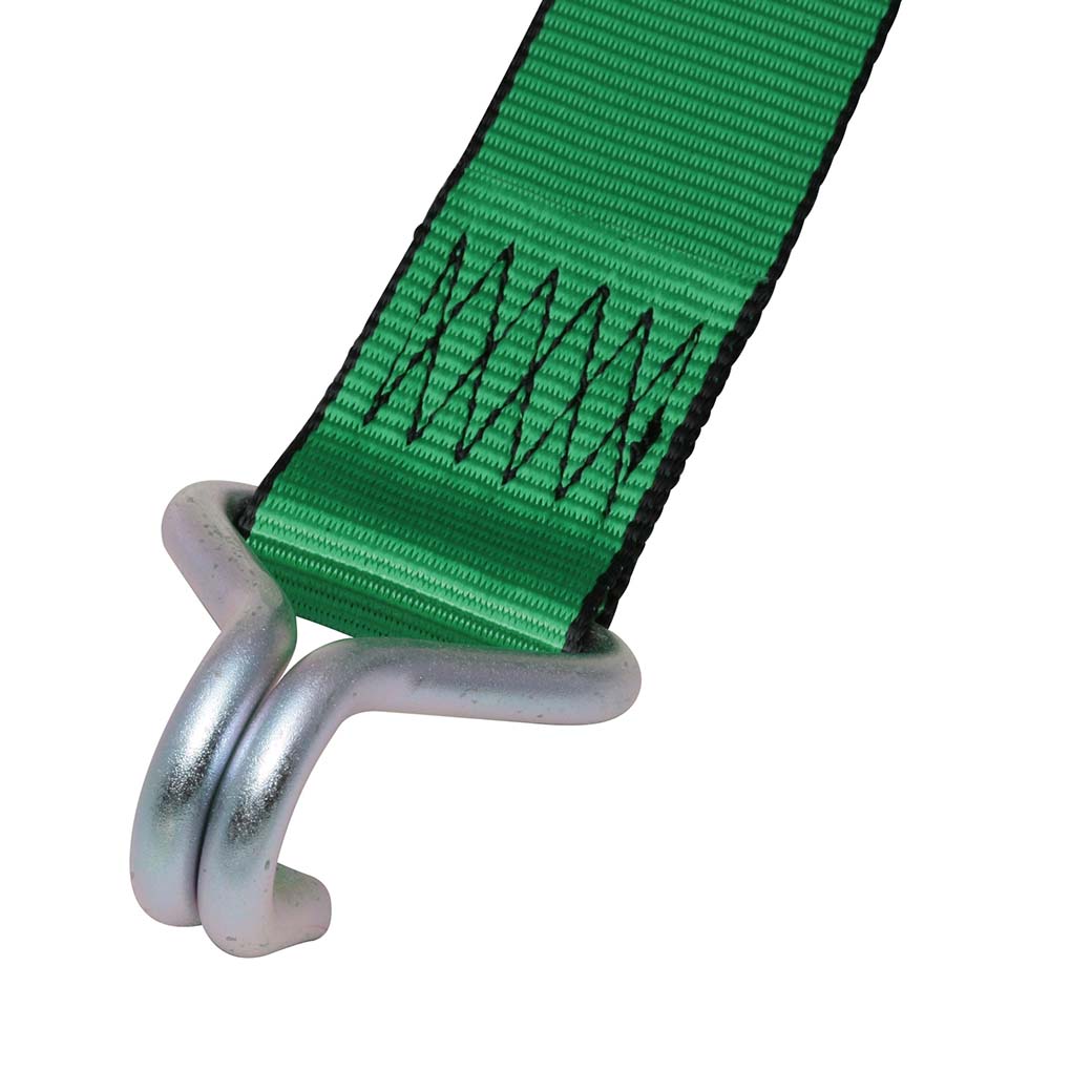 オールセーフ製ラッシングベルト両端ナローフック金具、固定側1m×調整側7m仕様。 積載貨物の固定、荷崩れ防止対策に最適。