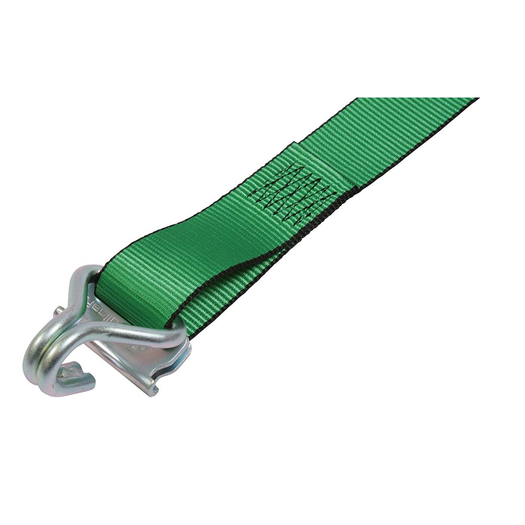 オールセーフ製ラッシングベルト両端Tワンピース、ナローフック兼用金具、固定側1m×調整側7m仕様。 積載貨物の固定、荷崩れ防止対策に最適。